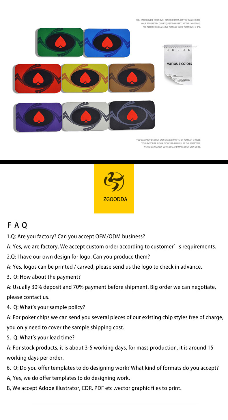 We also accept custom chip service, you can choose other sizes to customize your own design. It also has three sizes, one round chip, the size is 400*3mm, and two larger square sizes, they are 680*48*3.5, weighing 40.5g and 850*530*3.5, weighing 40g . They are also customizable, and you can also customize your own logo and design on them.