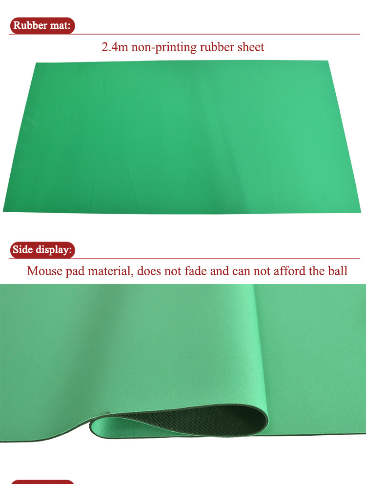 This is a table mat made of the rubber, which has good anti-slip effect and mute effect, and can provide poker players with a good gaming experience. Even if you are playing a family poker game at home, you can still enjoy casino-level experience . Its size is 2.4*1.2m, thickness is 3mm, and it is a green solid color design.